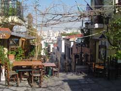 Στην περίπτωση της Πλάκας, τα πράγματα είναι ακόμη πιο απλά: αρκεί να ακολουθήσουμε την από πάνω –ή την από κάτω– παράλληλο, κι η βοή σβήνει, δίνοντας την θέση της σε λιθόκτιστα σοκάκια που αντηχούν μόνο τα βήματά μας, ευωδιάζουν γιασεμί και φωτίζονται από μαύρα σιδερένια φαναράκια. Στις γωνίες τους, ανακαλύπτουμε μικρά πολύχρωμα café - bistrot, που σερβίρουν αχνιστό τσάι και ολόφρεσκα γλυκά, φωτογραφίζουμε αρχαία μνημεία και χαλαρώνουμε σε καταπράσινες αυλές. Όπως παλιά.