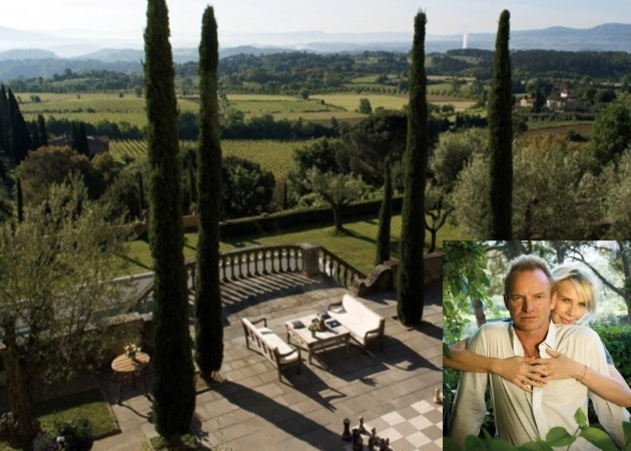 Μια βίλα με αμπελώνες στην Τοσκάνη της Ιταλίας φιλοξενεί στον ελεύθερο χρόνο του τον τραγουδιστή Sting και τη σύζυγό του Trudie Styler.