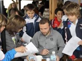 Αρχικά, στάθηκε στην παρουσία του κόσμου στην εκδήλωση της μπουτίκ. "Μας χαροποιεί το γεγονός ότι είμαστε εδώ με κόσμο και ιδιαίτερα με μικρά παιδιά. Είναι σημαντικό να γίνονται τέτοιες εκδηλώσεις, ειδικά τώρα που πλησιάζουν τα Χριστούγεννα" τόνισε. Στη συνέχεια, με αφορμή την πρόσφατη επίσκεψη του Μάκη Γκαγκάτση μαζί με αρχιτέκτονες στο γήπεδο και το προπονητικό κέντρο Μπάγερν, αναφέρθηκε για τις κινήσεις που γίνονται για βελτίωση της Τούμπας και την έρευνα που κάνει ο Σαββίδης για την κατασκευή νέου γηπέδου: "Όλα αυτά είναι προς τη θετική κατεύθυνση. Εγώ δεν μπορώ να πω αν μπορεί γίνει γήπεδο στην Τούμπα ή όχι. Εμείς οι παίκτες και ο κόσμος θέλουμε ένα νέο γήπεδο για να το χαιρόμαστε. Όσο πιο γρήγορα γίνει ένα νέο γήπεδο τόσο καλύτερο . Ο ΠΑΟΚ είναι ένας μεγάλος σύλλογος και έχει ανάγκη από ένα μεγάλο γήπεδο υψηλών προδιαγραφών. Αν το αποκτήσει, θα μεγαλώσει και το πρεστίζ του συλλόγου". Ακόμη, κλήθηκε να σχολιάσει και θέματα που δεν έχουν σχέση με τον ΠΑΟΚ,όπως για παράδειγμα η οικονομική κρίση. "Όπως όλη η κοινωνία, έτσι και το ποδόσφαιρο δε θα μπορούσε να μην επηρεαστεί από την κρίση, έτσι έχει αγγίξει και εμάς". Τέλος, ρωτήθηκε για κάποιες αλλαγές που σχεδιάζεται να γίνουν στο ποδόσφαιρο με τη χρήση της τεχνολογίας και ειδικά για την τοποθέτηση μικροτσίπ στις μπάλες: "Πρέπει να αποφασίσουμε τι θέλουμε. Αν μας αρέσει ή όχι η χρήση της τεχνολογίας στο ποδόσφαιρο. Εγώ θεωρώ ότι είναι θετικό, για να ξέρουν οι παίκτες και οι θεατές την ώρα του αγώνα αν η μπάλα έχει περάσει ή όχι τη γραμμή".