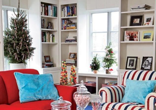 Μια παιχνιδιάρικη ατμόσφαιρα απαιτεί να στολίσεις το σπίτι σου περίπου σαν να ήσουν ο Άγιος Βασίλης ή ένα από τα ξωτικά του: πολλά ζαχαρωτά και ως στολίδια στο δέντρο, χρωματιστές μπάλες, διάφορα μικρά δεντράκια σε άλλα σημεία του σαλονιού και χρώμα στα έπιπλα!